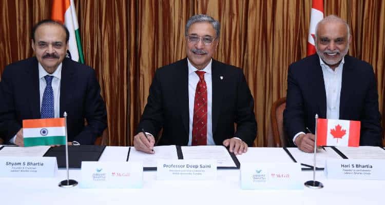 The MoU was signed by Shyam S Bhartia, Founder & Chairman, Jubilant Bhartia Group and Hari S Bhartia, Founder & Co-Chairman, Jubilant Bhartia Group and Professor Deep Saini, President and Vice-Chancellor, McGill University.