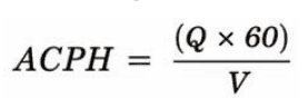 Here, Q is the airflow rate (ft³/min) and V is the room volume (ft³).